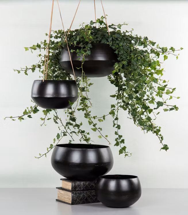 Snygg och stilren svart ampel i metall. Upphängning i läderband, vilket är en läcker detalj. Finns i två storlekar och de är snygga både solo och tillsammans. Passar utmärkt att hänga i ett fönster, men även i uterummet eller hängande från taket.