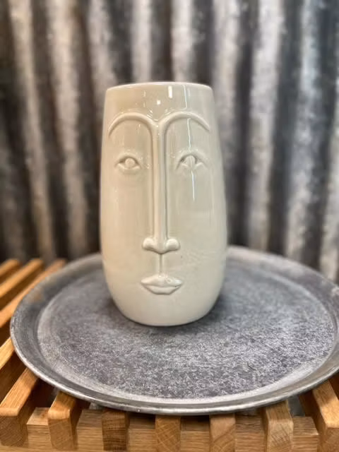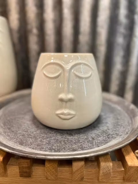 Kruka i laserad keramik med ett läckert ansikte. Finns i två olika modeller som passar lika bra ihop som solo.