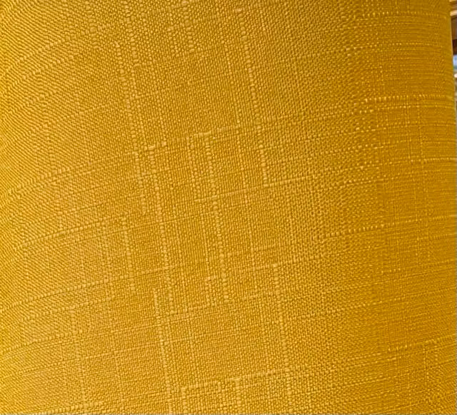 Rustik och vacker lampskärm i grovlinnestruktur. Lampskärmen ger ett fint uttryck med sin struktur och en kallare gul färg.