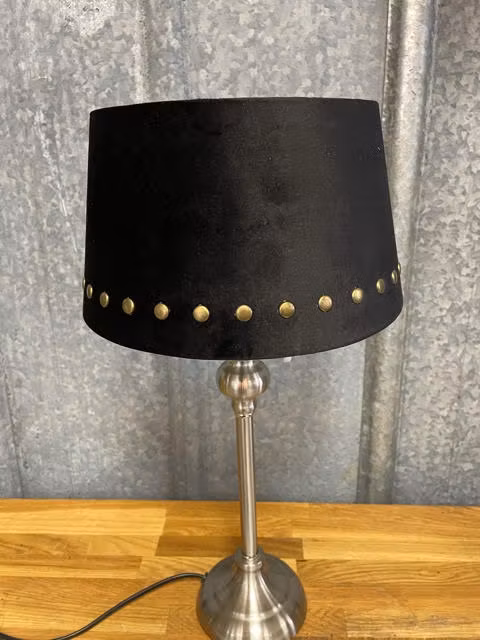 Lampskärmen är en sammetsskärm med lyster med dekorativa nitar i mässingsfärg. Lampskärmen har s.k. fast lyra; en ställning som ska skruvas fast på lamphållaren. Det medföljer en adapter så den passar till både E14 och E27 sockel.