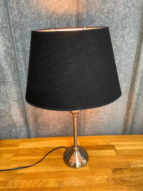 Lampskärmen har s.k. fast lyra; en ställning som ska skruvas fast på lamphållaren. Det medföljer en adapter så den passar till både E14 och E27 sockel.