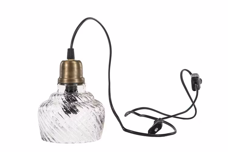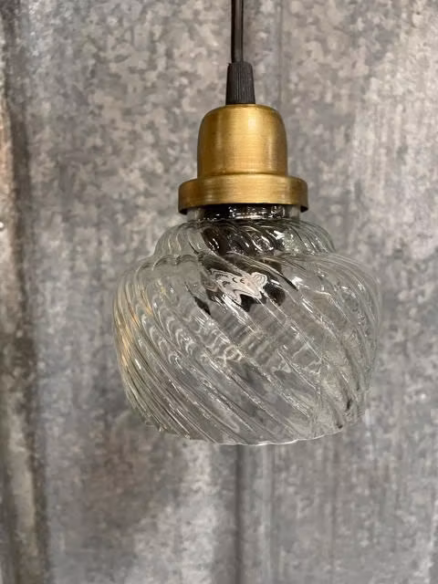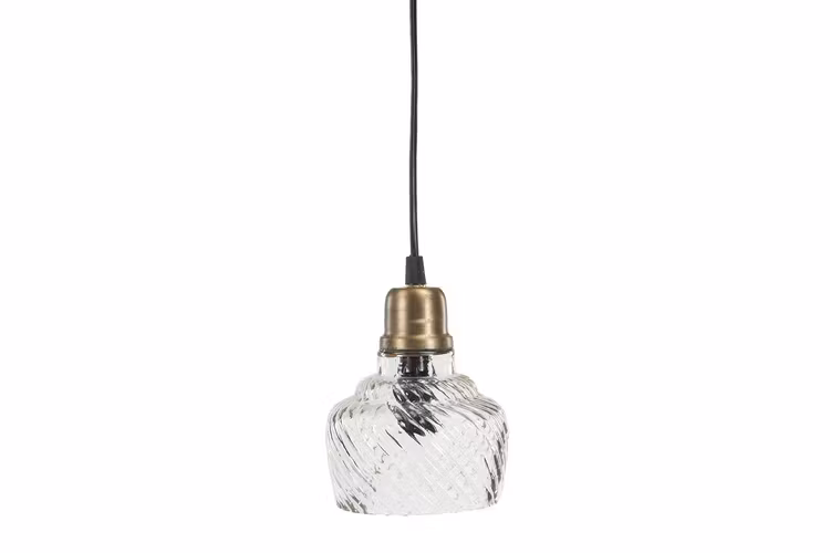 Hängande lampa med glaskupa samt färgdetaljer i antik mässing i en vacker gammaldags stil. En fönsterlampa som med sin rustika och romantiska känsla passar i sovrummet, vardagsrummet, köket eller hallen.